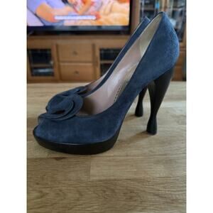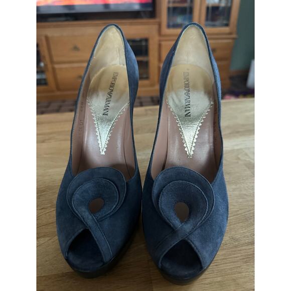 Emporio Armani Navy Blue Unique Heeled Peep Toe Heels Sz. 36.5