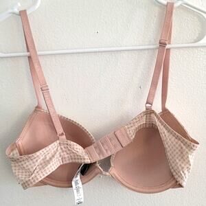 Emporio Armani Padded Push-Up Floral Lace Gingham Bra Tan 34B