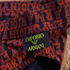 Stylish Emporio Armani briefs. Bold red and black design. Comfortable fit.
