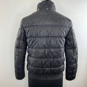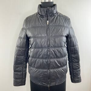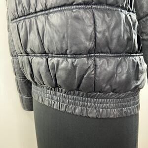 Emporio Armani Reversible Navy Blue Leather / Nylon Quilted Puffer Jacket 42 M