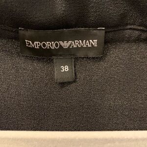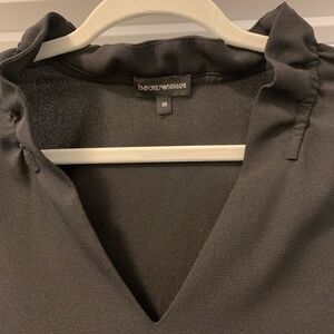 Emporio Armani Crepe Frills Mini Dress. Size: 38. 2 Front pockets. Unlined. 95% Poly, 5% elastane. Slightly ruffled neckline and shoulders. Beautiful dress!