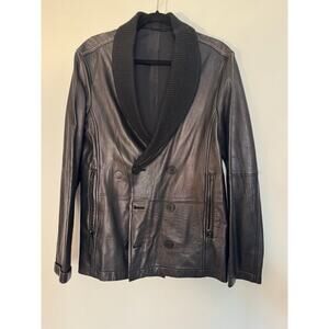 Emporio Armani Vintage Leather Double Breasted Jacket with Denim Back -Size 48