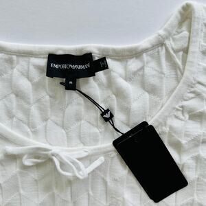Emporio Armani White Sweater Size Medium Chevron Texture Crewneck Cotton Summer