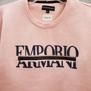 Emporio Armani Women Sweater XL Pink Logo Chest Zipper Long Sleeve Crew READ