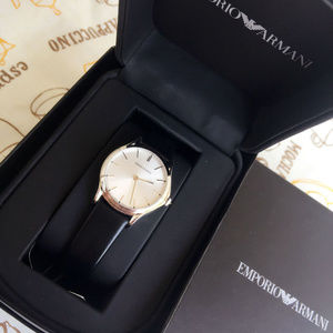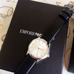 Emporio Armani offers a luxurious finish to this casual leather watch, with Swiss-made precision and quality.
