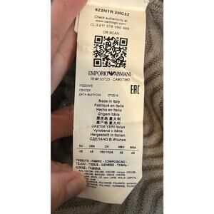 The Emporio Armani Women's Chevron Wool Blend Gray Sweater in size 48 IT is a sophisticated and stylish piece that exudes luxury and elegance. Made in Italy, this pullover sweater features a classic round neckline and long sleeves, making it perfect for all seasons. The gray color adds a timeless and versatile touch to the sweater, while the intricate chevron wool blend adds a unique touch of texture and sophistication to your outfit. Perfect for any woman looking to elevate her wardrobe with a high-quality and fashionable piece from a renowned luxury brand like Emporio Armani.