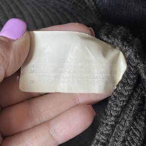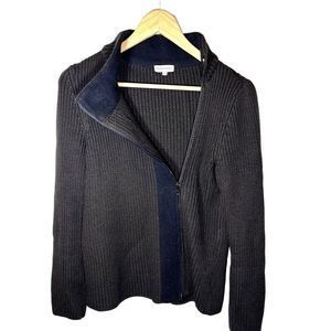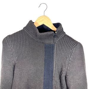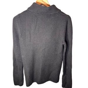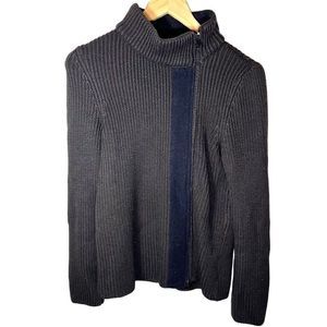 Emporio Armani Wool Chunky Knit Ribbed Brown Zip Up Mock Neck Sweater Size 12