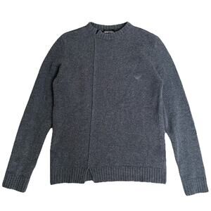 Emporio Armani Wool Sweater Men's Gray Pullover Crewneck Embroidered Logo 48 M