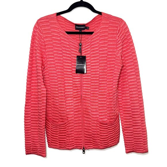 Emporio Armani Zip Up Cardigan Sweater Blazer - Coral 44/12. This item is new with tags attached.