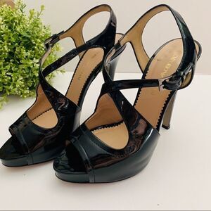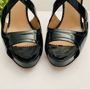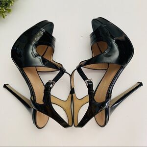 Emporio Armani Womens 38 Heel Black Patent Open Toe Criss Cross Stilleto Sandal