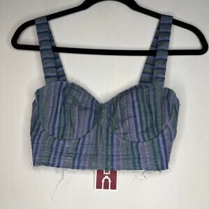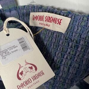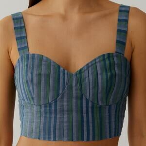 Emporio Sirenuse 70's Stripe Blue Bustier Linen Cropped Top Size 38