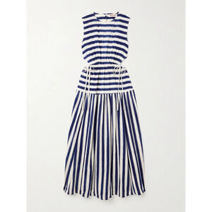 Emporio Sirenuse Blue and White Striped Cut Out Midi Dress