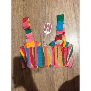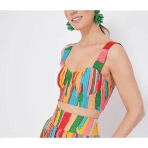 Emporio Sirenuse Positano Pink Dahlia Abstract Linen Crop Top Size S NWT $628