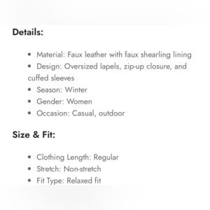 The cutest leather jacket. Size medium but runs very bigger. Never worn
