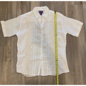 Empra White Linen Embroidered Button Up Shirt Size XL