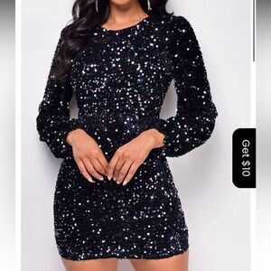 Emprada Ena Black Blue Multi Color Sequin Dress Black Small Nwt