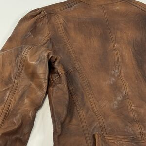Empresa Italian Designer Brown Real Soft Leather Motorcycle Jacket Womens Size 44 (S)