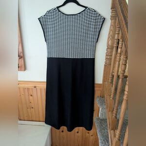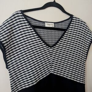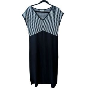 Emproved Knit Navy White Cap Sleeve Midi Dress Size Medium