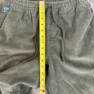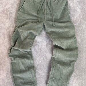 The Empyre Corduroy Sage Green Joggers in size small are a stylish and comfortable option for casual wear. Featuring a drawstring closure, relaxed fit, and tapered leg style, these pants are perfect for everyday use. Made from corduroy fabric, they offer a trendy look in a versatile green color. With a 29-inch inseam and flat front design, these joggers from Empyre are a chic addition to any woman's wardrobe