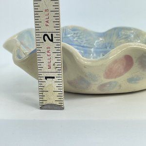 Empty Bowls Art Pottery Stoneware Bowl Blue Tan Pink Paws Fish Spots Signed 2015