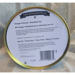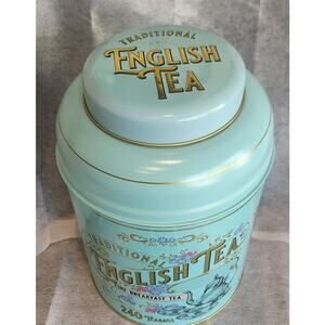 Empty Traditional English Tea Tin Canister Held Teabags Fine Breakfast Vtg Style