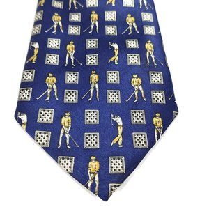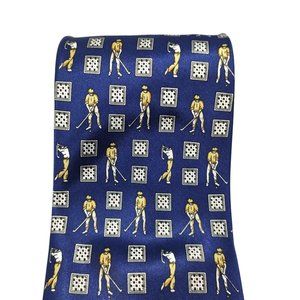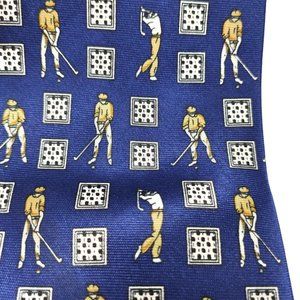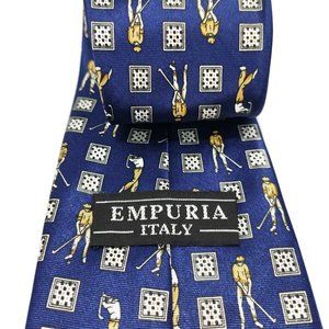 Empuria Italy Golf Links Square Geometric Pattern Novelty Blue Mens Necktie Tie