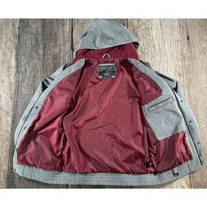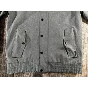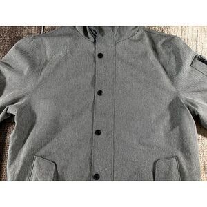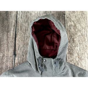 Empyre 10kmm Waterproof Grey Snowboarding Jacket. Size medium. In very good condition. Has light normal wear. Has a hood with drawstrings. Has a full zip front with snap buttons next to it. Has velcro straps on the cuffs. Pocket on the interior. Two pockets on the lower front. 10,000mm waterproof.