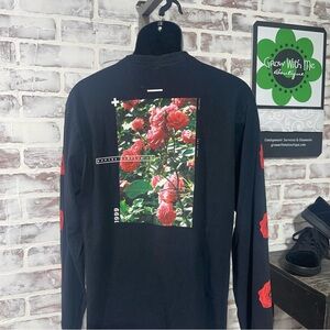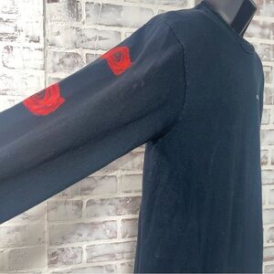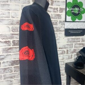 This Empyre long sleeve tee combines a sleek black base with striking red rose accents along the sleeves, offering a bold and dynamic look. Crafted for both style and comfort, it's perfect for casual wear or athletic activities. The subtle white logo on the chest adds a touch of brand identity to this versatile piece.