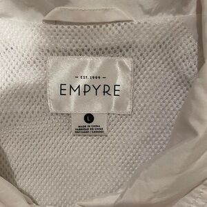 -brand new, no flaws, perfect buttons and has the nice blue and yellow on the side of the sleeves, inspect the pics