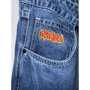 The Empyre Cargo Jeans for men in size 34 feature a relaxed and loose fit, making them perfect for a casual and laid-back style. Made of durable cotton denim in a medium wash, these wide-leg skater jeans are adorned with logo accents and cargo pockets for added flair. With a mid-rise waist and a 30-inch inseam, these vintage-inspired jeans are ideal for a variety of seasons and occasions, whether it's for a retro y2k aesthetic or for everyday wear. Easy to care for with machine washable fabric, these blue jeans are a versatile addition to any wardrobe.