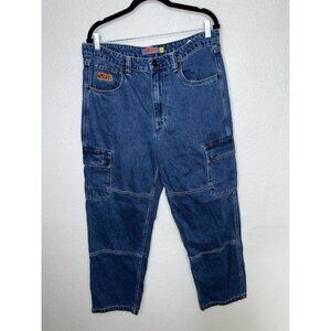 Empyre Cargo Jeans Men 34 Relaxed Loose Blue Denim Baggy Wide Leg Skater Y2K 2A