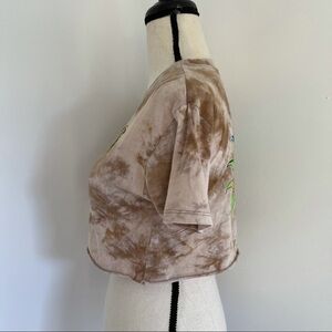 In preowned condition, gently worn. Size Small. Raw hem. Pretty embroidered daisy aplique. Colorful design on the back.