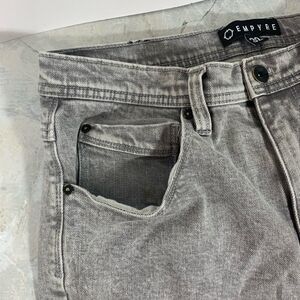 Empyre Gray Acid Wash Distressed Destroyed Skinny Jeans Size 32Wx29.5L. Great Preowned condition, except has a light spot on one of the back pockets and inside one of the front pockets thats not visible because its on the inside of the pocket. Please see pictures.