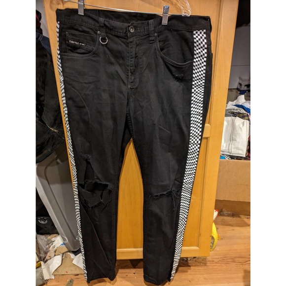 Empyre Jeans Mens 38 Recoil Stretch Black Skinny Checker Race Print Destroy