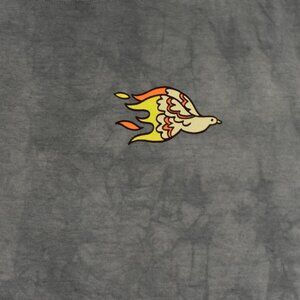 Add a fun and comfortable new tee to your daily mix with the Here For A Good Time green tie-dye t-shirt from Empyre. This cotton constructed tee features a relaxed fit and tag-free neckline for comfort. A light green tie-dye treatment is added throughout for a one-of-a-kind look. A flying bird is screen-printed at the left chest, while the back displays a large graphic of a forest scene with birds, trees, a flowing stream, flowers, and a volcano exploding in the background, accompanied by text that reads "Here For A Good Time, Not For A Long Time."