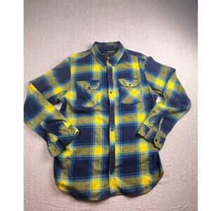 Empyre Men’s Large Blue/Yellow Plaid Flannel Long Sleeve Button Shirt Streetwear