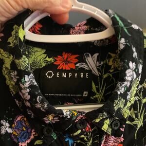 Empyre Rayon Sz. M Black Floral Buttton Up Short Sleeves Shirt