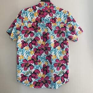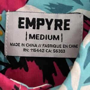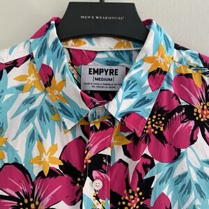 Empyre Short Sleeve Button Up Hawaiian Shirt Sz Medium Pink Yellow Blue Floral