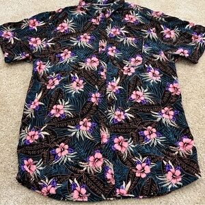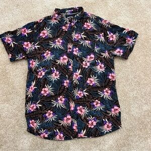 Empyre Skateboard Black Floral Button Shirt Men’s Size Large Button Down Rayon , Preowned condition, light normal wear, fading, pictures provided