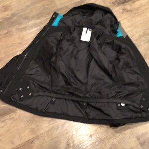 Empyre Technical Outerwear. Waterproof. Excellent condition. Zips up with Velcro closure. Inside lining attached with snap loops for your pants so snow doesn’t go down your pants. Snap pockets zips under armpits for added room and cooling. Cinches up in back of hood for adjustability. Adjustable snaps for wrists. Weatherproof canvas on the outside and lined inside. Size Small. P2P 23”. Shoulder to bottom 28”. Sleeves 24”.