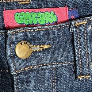 Empyre denim jeans featuring a stylish brass button. Ideal for everyday wear.
