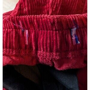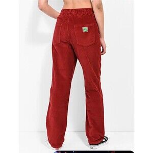 The Empyre Tori Red Corduroy Skate 90s Pants in size 6 feature a pleated front and a straight leg style. Made of comfortable cotton fabric these throwback pants are perfect for casual or travel occasions during the winter, fall, or spring. The red color and embroidered accents give them a grunge-inspired look, evoking a retro 90s style suitable for women who enjoy a skater aesthetic.