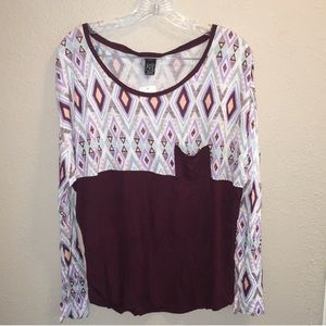 Empyre Tribal Dolman Dark Red Long Sleeve Top Juniors Size Medium