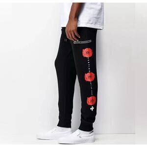 Empyre Vertirose Black Jogger Sweatpants Red Roses Size Medium