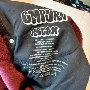 Empyre Women 30 Corduroy Pant Maroon Red Tapered Leg Stretch Waist Relaxed Fit