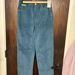 Dark blue straight leg jeans. Classic and versatile. Perfect for everyday wear.