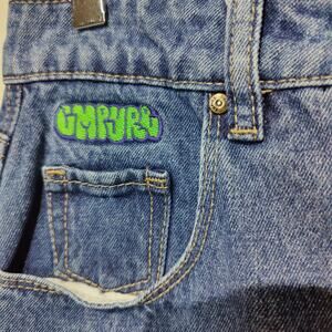 Empyre Tori style dragon embroidered jeans. High rise, loose fit or barrel leg. 100% cotton.