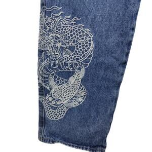 Empyre Y2K 90s Style Sz 2 Dragon Embroidered High Rise Loose Fit Jeans Zumiez