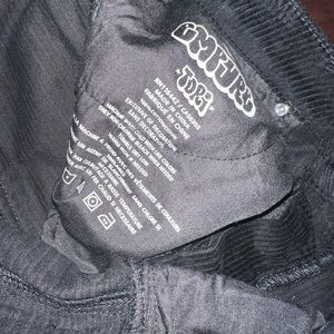 Black corduroy pants in a relaxed loose fit straight leg style. New.