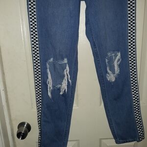 Empyre mom Jean's size 0 racing stripes down sides side to side measurements is 13.5" rise is 11.5" inseam is 27.5" top of waist to bottom hem is 37" if you have any questions please message me bundle for bigger deals bin A-51